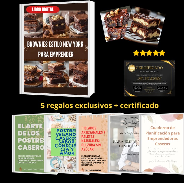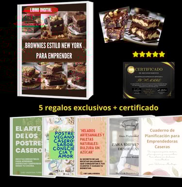 Accede hoy mismo y obtén acceso de por vida a tu libro digital “Brownies Estilo New York para Emprender”, con la posibilidad de futuras actualizaciones y nuevos contenidos exclusivos.